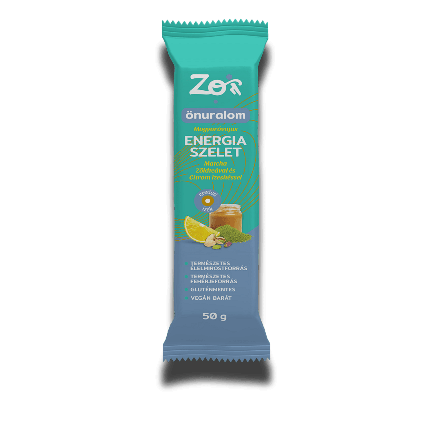 ZOI Önuralom Mogyoróvajas energiaszelet Matcha zöldteával és Pisztácia darabokkal és Citrom ízesítéssel